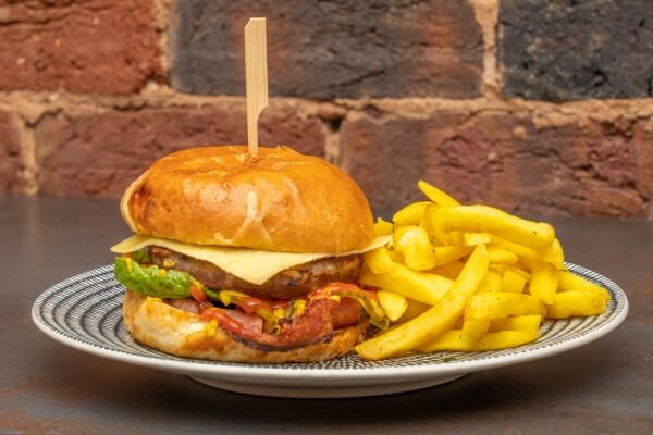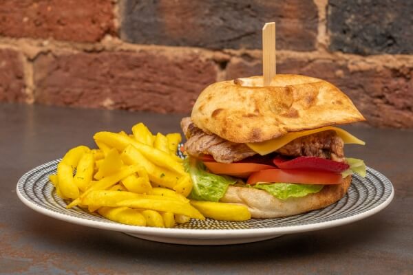 Served on a Turkish Bun with Aioli, Cos Lettuce, Tomato, Beetroot, Cheese, Homemade Tomato Chutney and Chips